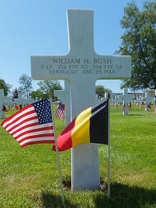 William Bush was employed at the International Mack Motor Company.Statement from Capt Francis P. Mcintire, who flew in the same mission: “Lt Bush was flying as Red No. 3 on an armed reconnaissance mission in the Trier area on 25 December. We spotted a large M/T convoy in the middle of the town of Prüm and Lt Bush and I went down to strafe it. There was intense 20 mm flak in the area. When I pulled off the target, I looked around for Lt Bush but could not find him. I went back to Prüm and saw his ship burning on top of the hill just south of town. I believe that it was impossible for Lt Bush to have gotten out of the crash.”