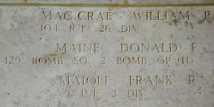 Pfc William Mac Crae enlisted on 20 July 1943 in Boston, Massachusetts. He attended high school for 4 years and was a machinist apprentice before he enlisted.He was taken prisoner of war on 13 November 1944 when his unit was located in the vicinity of Obreck, France.
