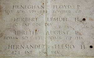 Lemuel Herbert enlisted on 16 April 1941 at Wilkes Barre, Pennsylvania.During interviews after the battle, two men from his squad reported that they had seen him hit in the head and fall.