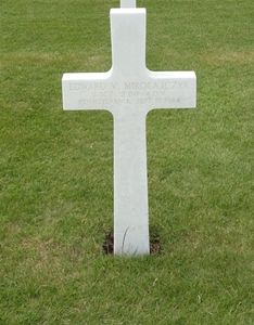 S/Sgt Edward V. Mikolajczyk was employed as an orderly at the Hazleton State Hospital before he enlisted at Fort George G. Meade, Maryland on 20 January 1942 and was sent overseas in January 1944.He was awarded the Purple Heart Medal a first time for wounds suffered in action on 23 June 1944.