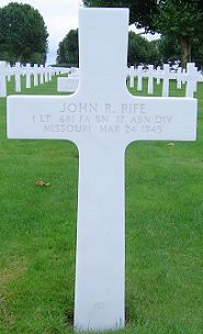 1st Lt John R. Rife grew up the son of a career Army officer thus lived at various bases throughout his life.He attended Kemper Military Academy with the class of 1937 and enlisted at Fort Leavenworth, Kansas on 1 July 1941. He attended Field Artillery Officers Candidate School at Fort Sill with the Class 50-43. He first served with the 18th Field Artillery.