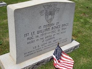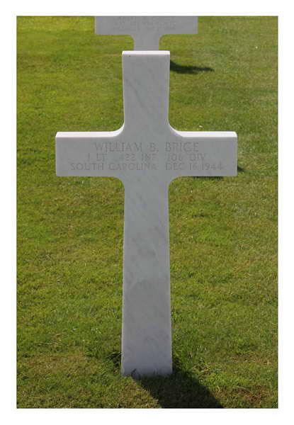 1st Lt William B. Brice graduated from Mt. Zion Institute, June 1936, spent two years at Erskine College, entered United States Military Academy and graduated in January, 1943. After graduation, he entered the service of the United States as a second lieutenant, choosing the Infantry training at Fort Benning, Georgia, he was promoted to First Lieutenant and stationed at Fort Jackson, Columbia, South Carolina, whence he was sent overseas in October 1944 on December 16, 1944 in the Battle of the Bulge, he met a soldier's death in action.