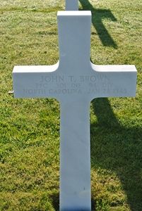 Pfc John T. Brown attended Rockingham High School.He enlisted at Fort Bragg, North Carolina on 23 November 1943 and was sent overseas in August 1944.