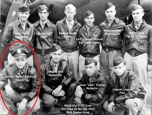 When the remains of the killed crew members were disinterred at the cemetery of Vechta, only Lt Cipresso couldn't be immediately identified. His remains were marked as Unknown X-1180 and evacuated to Ardennes Cemetery, where he could be identified by comparison of dental charts.