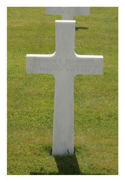 T/Sgt Vernon F. Cummings is remembered with a memorial marker at Emery Cemetery in Dover, Price County, Wisconsin.