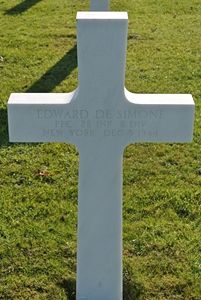 Pfc Edward De Simone enlisted in New York City, New York on 8 February 1943. He attended high school for 4 years and was an errand boy before he enlisted.Source of information: Raf Dyckmans, Luc van der Sterren, Terry Hirsch, www.wwiimemorial.com, www.archives.gov - WWII Enlistment Record, www.ancestry.com - Robert De Simone Family Tree, IDPF of Raymond C. Blanton, WWII Draft Card