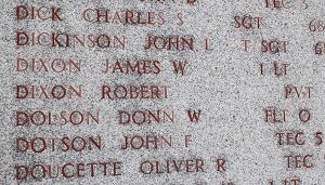 Pvt Robert Dixon was a farmer before he enlisted at Camp Shelby, Mississippi on 20 November 1942.His battery was occupying postions near Schönberg, Sankt-Vith on 17 December 1944, when they were overrun by German infantry. Pvt Dixon was reported as having died of wounds after having been carried to a log hut, used as a kitchen. When the surviving members of the unit were taken prisoner, the remains of Pvt Dixon were last seen lying in this hut.