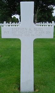 His regimental commanding officer wrote the following to his family "While attempting to reach the regimental assembly point near Wesel, Germany, an enemy machine gun opened fire. Crossing the open ground, Pvt. Bliss was caught in the fire and dropped to the ground mortally wounded. Medical aid was not necessary as he died instantly."