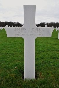 Pvt Joseph J. Knesal enlisted on 13 July 1943 at Little Rock, Arkansas. He was sent overseas in June 1944.Source of information: Terry Hirsch, www.wwiimemorial.com, www.ancestry.com McVeigh Family Tree / 1930 Census