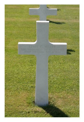 Sgt Lewis Miller enlisted on 7 April 1943 at Huntington, West Virginia."I was flying as Waist Gunner with Lt Fallon when a series of explosions attracted my attention to Lt Winsor's plane (Nr 41-31659) It was hit by several rapid bursts of flak and flames were seen to come from the open Bomb Bay. The plane then split in two and the bombs fell from the plane almost immediately following the explosion. I then noticed two chutes about 4,000 feet below that must have been from the rear of Lt Winsor's plane. I followed the plane down until it hit and did not notice any more chutes".