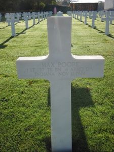 1st Lt Max Poore graduated from Medora High School and was employed by the Kizer Plating Co.He enlisted on 20 June 1941 at Fort Benjamin Harrison, Indiana and was sent overseas in December 1943.