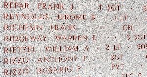 "On 29 October 1944, I had the pleasure of awarding to Staff Sergeant Warren E. Ridgeway, before an assembly of his comrades in arms, the Bronze Star for heroic achievement. It is a source of deepest satisfaction to me to present this recognition for outstanding service to a soldier who has demonstrated his unselfish devotion to the service of our Country and whose actions have surpassed our high standards of duty. I speak for the entire Division in assuring you that we share pride you must feel on learning of this award."