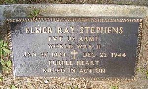 Pvt Elmer R. Stephens graduated from Hudson High School. He was employed at Southern Pine Lumber Company.Pvt Stephens is remembered at Old Union Cemetery in Hudson, Angelina County, Texas.