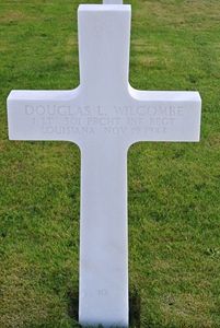 The former webpage of Mark Bando also holds the text of an obituary, dated 12 October 1945, with the following text: “Mrs. Douglas Wilcombe, Jr., the former Evelyn Lott, was officially notified last week that her husband, First Lt. Douglas Wilcombe, Jr. had been reported as killed in action while serving overseas. She last heard from him on 17 Nov 1944 and it is presumed that he died around that time. Besides his wife, he is survived by a son; his parents, Mr. and Mrs. Douglas Wilcombe, Sr. of Madisonville; one brother, Jimmie Wilcombe and two sisters.”