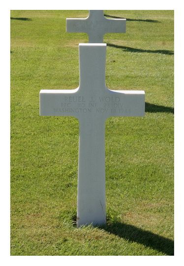 Pfc Reuel J. Wold was employed at Railway Express of the Great Northern Railway.He enlisted on 22 June 1943 at Mc Chord Field, Washington. He had come home after training and fought in the Battle of Normandy.