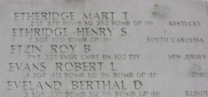 Mart Etheridge graduated from Louisville Male High School and was sent sent to England in September, 1942, four months after was awarded his wings at San Angelo, Texas.His brother David C. was killed in action in Italy on 29 May 1944.