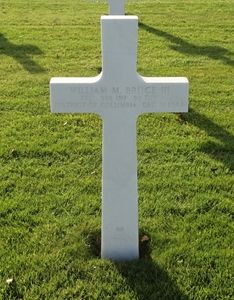 Pfc William M. Bruce III graduated from Hagerstown High School in 1940 and was a law student at National University, Washington, D.C.He enlisted at Fort Myer, Virginia on 16 March 1943. His regular military training program was supplemented with a course of specialized training at Texas A. and M. University.