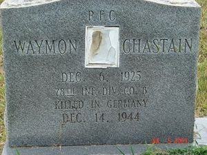 Pfc Waymon Chastain enlisted at Fort Bragg, North Carolina on 5 April 1944.