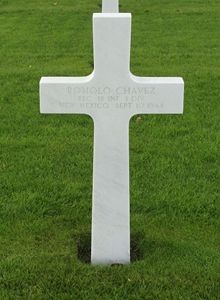 Pfc Romolo Chavez attended Salomon Luna High School and was a farmer and cattle grower.He enlisted at Fort Bliss, El Paso, Texas on 1 May 1942.