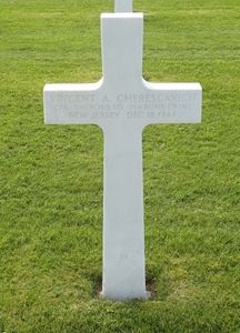 Cpl. Vincent A. Cherescavich graduated from Perth Amboy High School in 1941.The airplane crashed after a mid air collision with another B-26 (#42-96207) over the advanced landing ground A-75, situated in Cambrai/Epinoy.