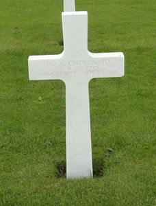 Private First Class Leo A. Chouinard enlisted in Boston, Massachusetts, on 16 November 1942. He trained at Camp Swift, Texas, the maneuver area in Louisiana and Fort Meade.Before entering the Army he was employed at the Sagamore Manufacturing Co. and later in construction work in Taunton.