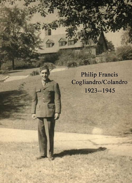 Pvt Philip F. Cogliandro enlisted in Wilkes Barre, Pennsylvania on 21 July 1944. He was noted as being employed as a Toolmaker and die sinker and setter and also as single, without dependents.