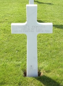 He was awarded the Silver Star Medal posthumously. The citation cited: For gallantry in action on 18 December 1944. At 0900 hours, the 2nd Battalion was withdrawn from the Monschau Forest sector to meet an enemy attack composed of SS infantry and panzer armored units of the German army in the vicinity of ... Cpf Connell was gunner of an anti-tank gun crew attached to E Company for support. Before defense could be completely established, an enemy attack spearheaded by a column of enemy tanks bore down on the gun position, firing as they advanced. Although Cpl Connell and his ammunition loader were fully exposed to the enemy tank column, they swung the gun into action, the first round setting the lead tank of the column ablaze. A fierce duel of cannon fire resulted. Enemy mortar armor piercing and high explosive shells wounded part of the gun crew. Cpl Connell, with the ammunition loader continued operating the gun in the face of vicious fire and succesfully immobilized the second tank of the column. However, a direct hit on the gun instantly killed Cpl Connell. As a result of this gallant fire-fight, the enemy's main effort was diverted to the one gun, thus enabling other friendly troops to take advantageous positions for counter blows which repulsed the vicious enemy attacks after a fierce fire-fight.