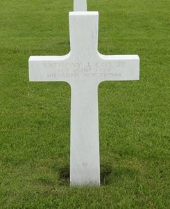 Sgt Anthony J. Cox Jr. joined the Regular Army in Jackson, Mississippi on 18 July 1940.His brother Sgt S. Cox was killed in action in 1943 and is commemorated on the Tablets of the Missing Cambridge Cemetery, England.