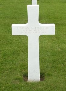 Pvt Harlan A. Crafton enlisted in Indianapolis, Indiana on 9 September 1944.After training at Fort McClellan, Ala., he was sent overseas in February 1945. Pvt Crafton was accidentally shot as he and a fellow-soldier were examining a captured enemy weapon. He left behind his wife Katherine and two young children, James, age four years and Sharon, age 11 months.