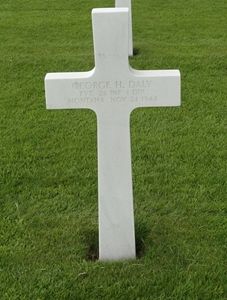 Pvt George H. Daly enlisted at Fort Douglas, Utah on 21 March 1944. He attended high school for 4 years and was a foreman in construction before he enlisted.Source of information: Raf Dyckmans, www.wwiimemorial.com, www.ancestry.com - The Independent Record / Billings Gazette / U.S. WWII Draft Cards Young Men, www.history.army.mil/html/bookshelves/resmat/ww2list.html