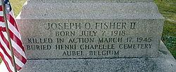 Pvt Joseph O. Fisher graduated from Lewiston High School in 1935 and from Bates College in 1939. He received a Master's degree in Geology from Columbia University in May 1944. and planned to receive his doctorate after the war. Two months after commencement exercises at Columbia University, he entered the military and left his job at the U.S. Geological Survey, a position he had held since 1939.He enlisted in Portland, Maine on 25 July 1944.