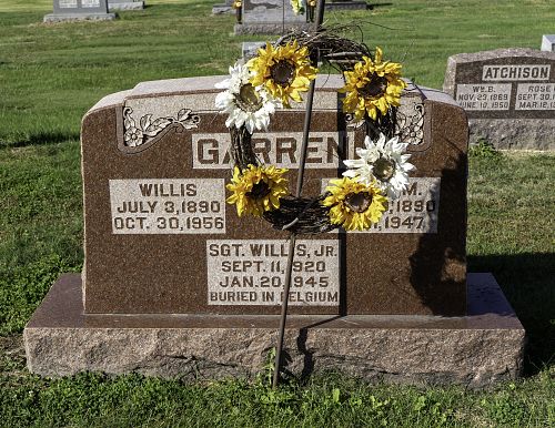 S/Sgt Willis Garren Jr. was employed at Eberhard Shoe Store before enlisted in Chicago, Illinois on 13 May 1942.He is remembered at Boyd Cemetery in Boyd, Jefferson County, Illinois with a memorial marker.