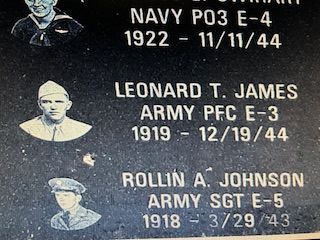 Pfc Leonard T. James is remembered at Fairview Cemetery, Homer, Calhoun County, Michigan and at WW2 Memorial in Coldwater, Michigan.