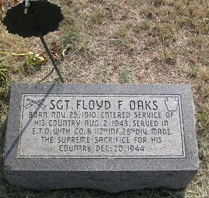 Word has been received that Sgt Floyd Oaks of Marquette has been missing in action in Luxembourg since December 20. His wife the former Maxine John, daughter of Mrs. Effie John of Little River; and his mother Mrs. Lovie Oaks, who lives in Marquette. Sgt Oaks worked for the Pacific Railway in Marquette before entering the service in the summer of 1943. He was sent overseas last fall.