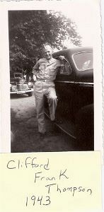Pvt Clifford F. Thompson worked for the Foster Wheeler Corporation as a leader of the boiler assembly.He enlisted in Rochester, New York on 17 February 1943. He trained at Camp Coxecomb and Camp Young in California ans Camp Maxey in Texas. During his training he qualified as a marksman with the machinegun, sub machinegun and pistol.