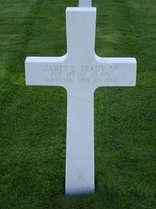 Pvt James Brady enlisted on 27 March 1944 at Fort Leavenworth, Kansas. He joined his unit from Replacement Depot on 16 October 1944 and was field promoted to Sergeant before his death. Promotion was not recorded.