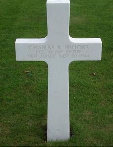 Pfc Charles Brooks graduated from Oberlin College in 1935 and studied for his master's degree at the University of Chicago. He was a professor of English at Iowa State College.He enlisted on 8 December 1943 at Camden, New Jersey.