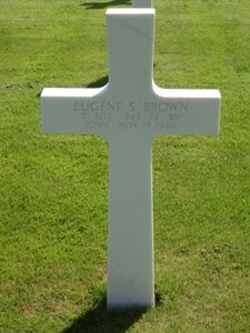 Eugene S. Brown was a truck driver before his enlistment in the Army.At 2.45 am an enemy airplane dropped several bombs. A direct hit on one of the houses, occupied by the Service Company, killing 8 men, all members of Battalion Maintenance Platoon.