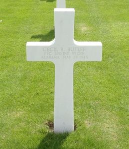 Pfc Cecil R. Butler was a teacher in Jackson County before entering the service. He enlisted at Fort McClellan, Alabama on 18 January 1944.Source of information: Peter Schouteten, Raf Dyckmans, Terry Hirsch, Carla Mans, www.wwiimemorial.com, www.archives.gov, www.ancestry.com, www.coulthart.com/134, www.findagrave.com - Annette Bradford