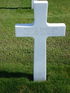 Pvt Ross C. Danford enlisted in Rochester, New York on 2 January 1943.A graduate of Brighton High School, he was employed at the Camera Works prior to his enlistment. He attended Maryland College under the ASTP but was transferred to an infantry unit when that program was abandoned.