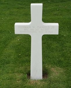 Pfc Herman W. Daniels enlisted in Erie, Pennsylvania on 5 December 1942.He is memorialized at the Blooming Valley Cemetery.