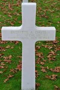 Pfc Everette A. Davis enlisted in Erie, Pennsylvania on 11 March 1943.He was killed by fragments of a high explosive artillery shell.