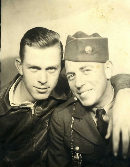 On 31 March 1945 the Reconnaissance Company was cut off from the First Battalion Task Force which was five miles behind it. At 0500 the 1st Platoon were fired on by a strong enemy defense, it lost three vehicles and seven men were killed immediatly. The platoon was able to hold their position and radio the situation back. At 0900 hours the task force moved out and passed through their positions with heavy fighting. It was found that Lt. Gascich, Sgt. Razniak and five others had been killed, two were injured and with them ten others were held prisoner in a farm house. Other men had made their escape or were keeping cover in the swamps and ditches.On one photo Pfc Davis poses with one of his army buddies. It was taken at Fort Benning, Georgia.