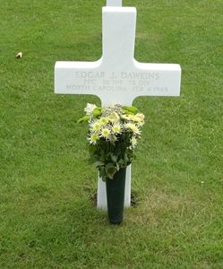Pfc Edgar J. Dawkins attended Burlington High School and was employed by the Fairchild Aircraft Co.He enlisted at Fort Bragg, North Carolina on 23 March 1944 and was sent overseas in October 1944.