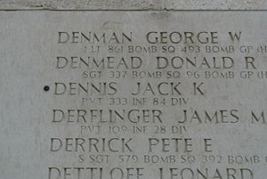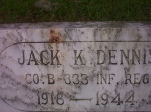 Pvt Jack K. Dennis enlisted at Camp Blanding, Florida on 28 August 1943.His remains and of another American infantryman were discovered near Beeck in Germany, during the excavation of a site for a new building.