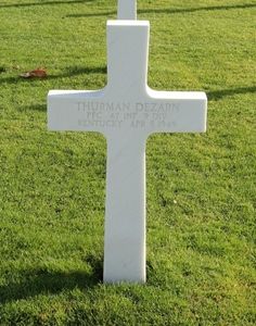 Pfc Thurman Dezarn worked for the Louisville Textile Company before he enlisted on 18 May 1943 in Cincinnati, Ohio. He was sent overseas in December 1943.