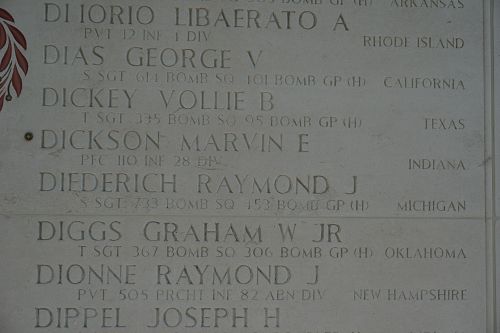 After the war, the American Graves Registration Command extensively searched the Hürtgen Forest, to locate Dickson’s remains. Unable to make a correlation with any remains found in the area, he was declared non-recoverable.
