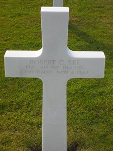 Pfc Robert C. Lee graduated from high school at Fort Peck in 1939 and was employed as a foreman for Kershaw, Swinerton and Walberg Co. of Denver.He enlisted in Denver, Colorado on 30 December 1942 and was selected for the Army Specialized Training Program. When the program was disbanded, he was transferred to the infantry and was sent overseas in September 1944.