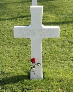 Pvt Donald F. Edwards enlisted in New York City, New York on 19 October 1944 and was overseas for only a month prior to the time of his death.His brother, Walter Edwards, was killed in action on 30 September 1944 in the South Pacific. He is buried at Manila American Cemetery at the Philippines.