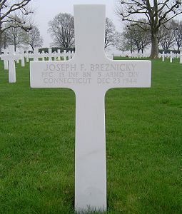Pfc Joseph F. Breznicky enlisted with the Field Artillery in Danbury, Connecticut on 24 February 1941.Source of information: Tom Verheijden, Astrid van Erp, Terry Hirsch, www.ancestry.com - Headstone and Interment Record, WWII Draft Cards, 1920 US Census